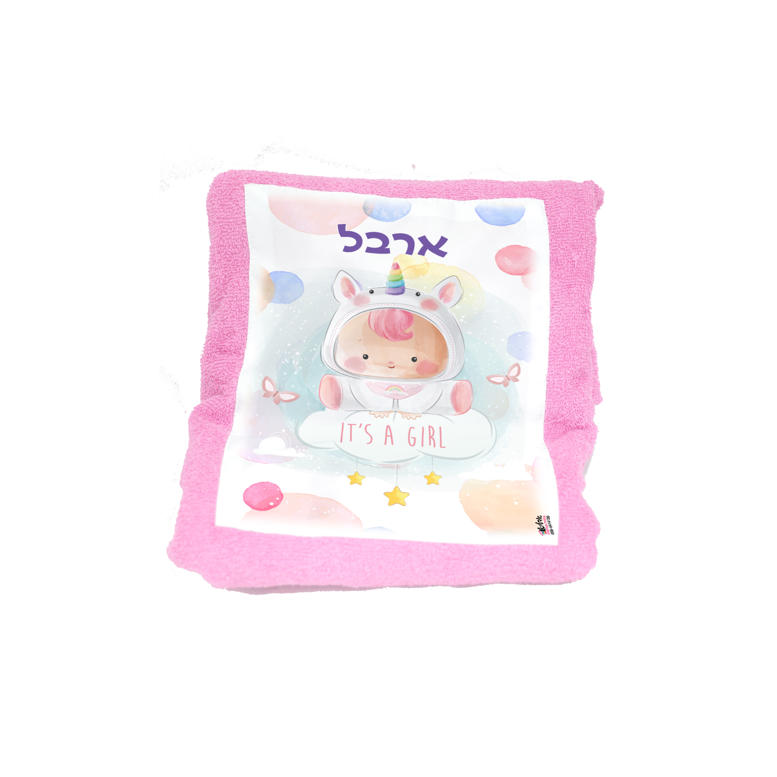 פונצו מגבת ורוד דגם חד קרן בייבי