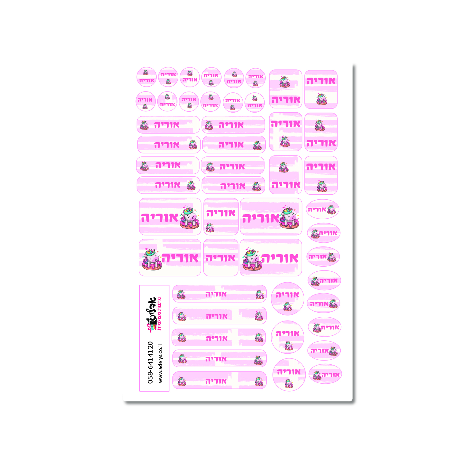 מדבקות סימון לבקבוקים ומוצצים דגם חד קרן