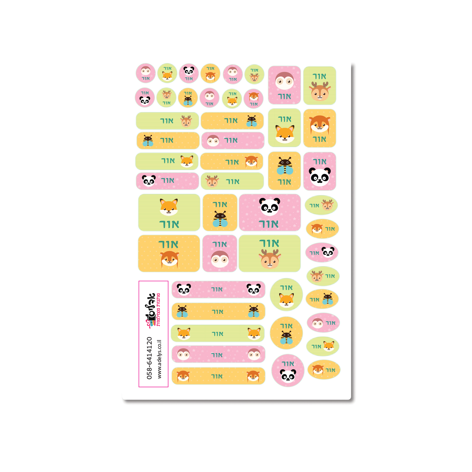 מדבקות סימון לבקבוקים ומוצצים דגם חיות