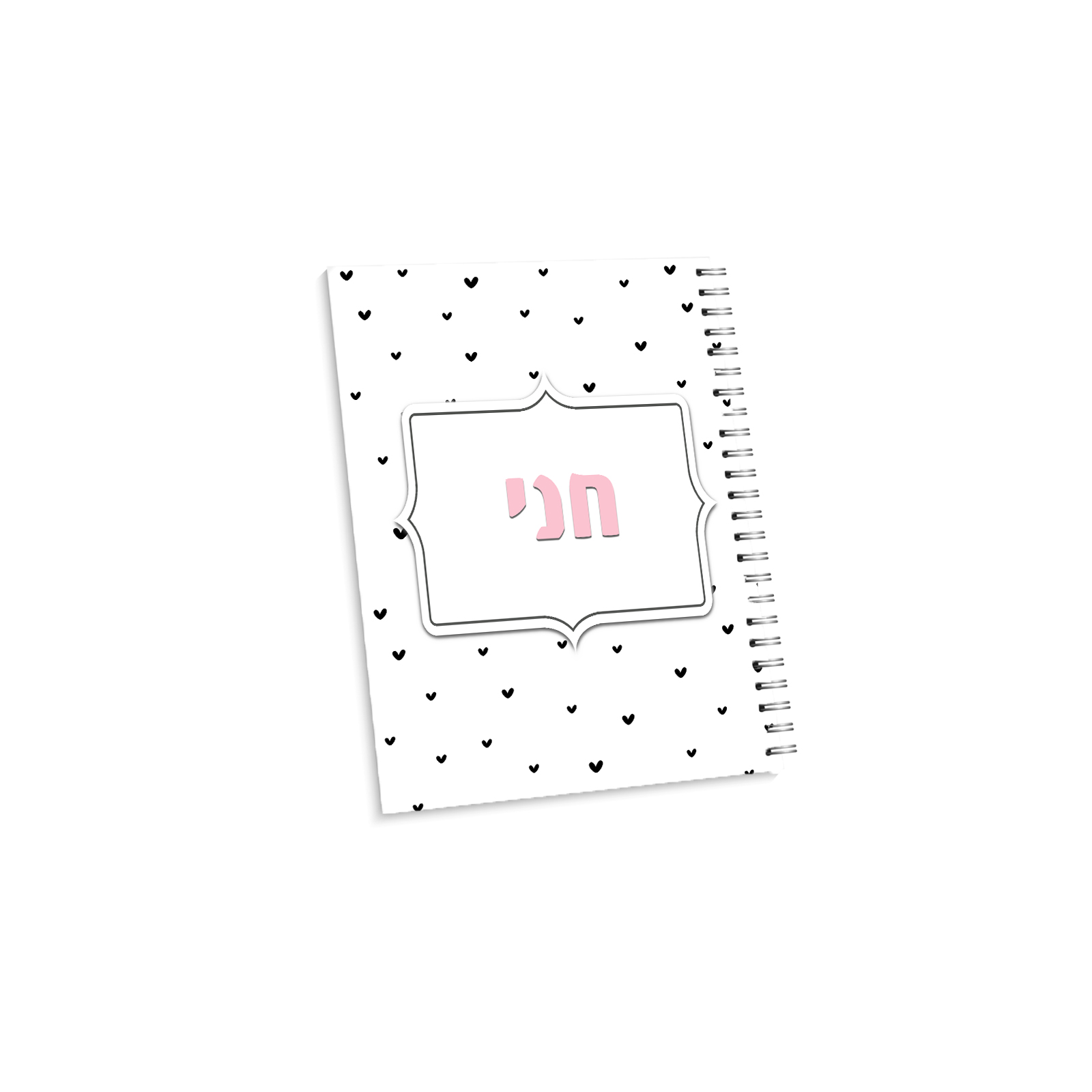מחברת ספירלה מעוצבת כריכה קשה דגם לבבות שחור