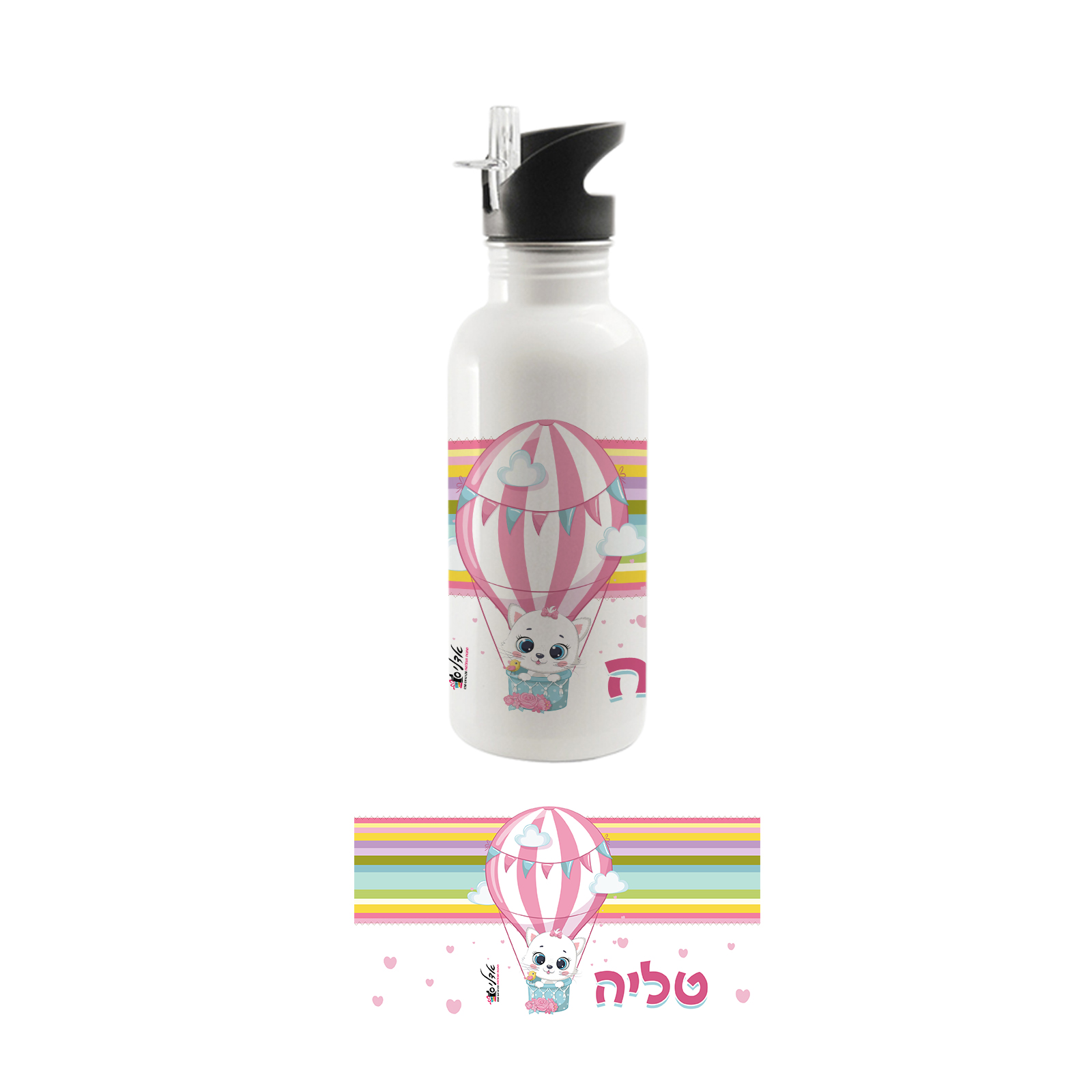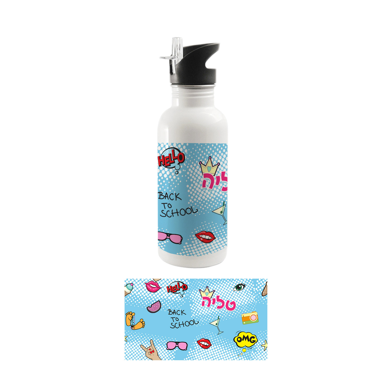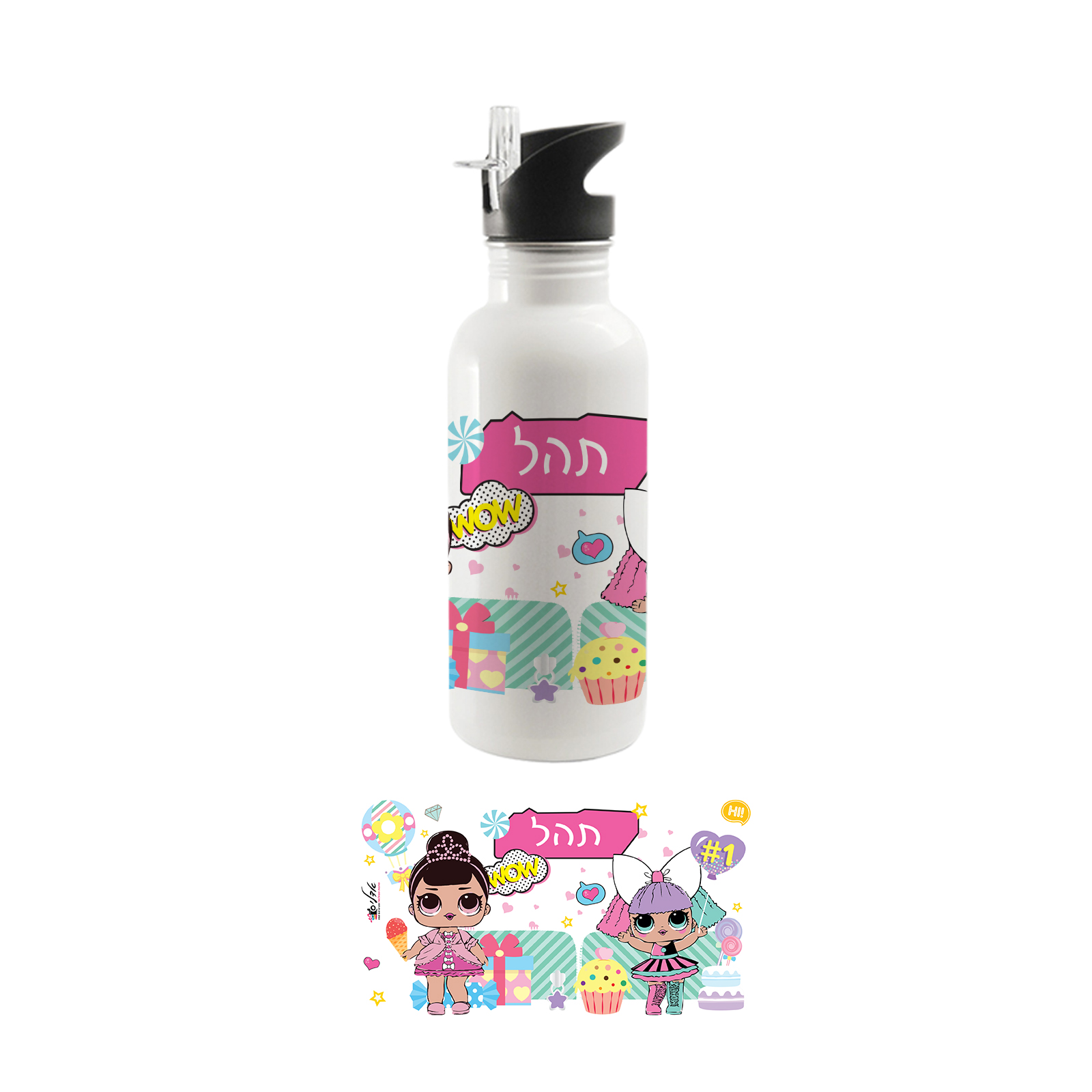 בקבוק אקולוגי מנירוסטה עם קש דגם בנות