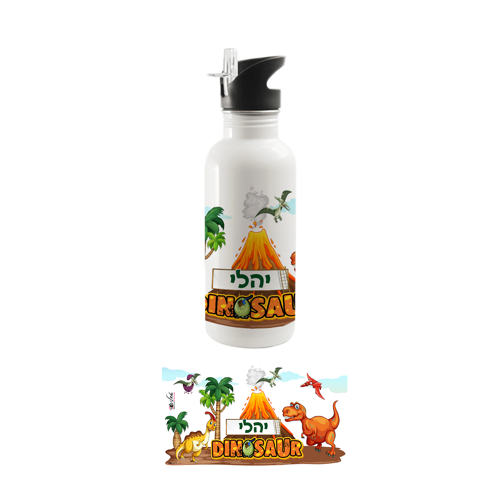 בקבוק אקולוגי מנירוסטה עם קש דגם דינוזאורים