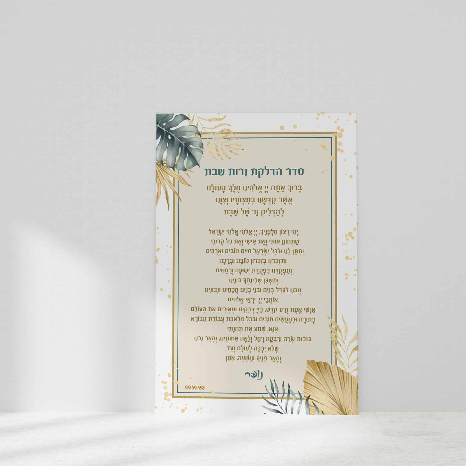 ברכת הדלקת נרות להפרשת חלה דגם עלים