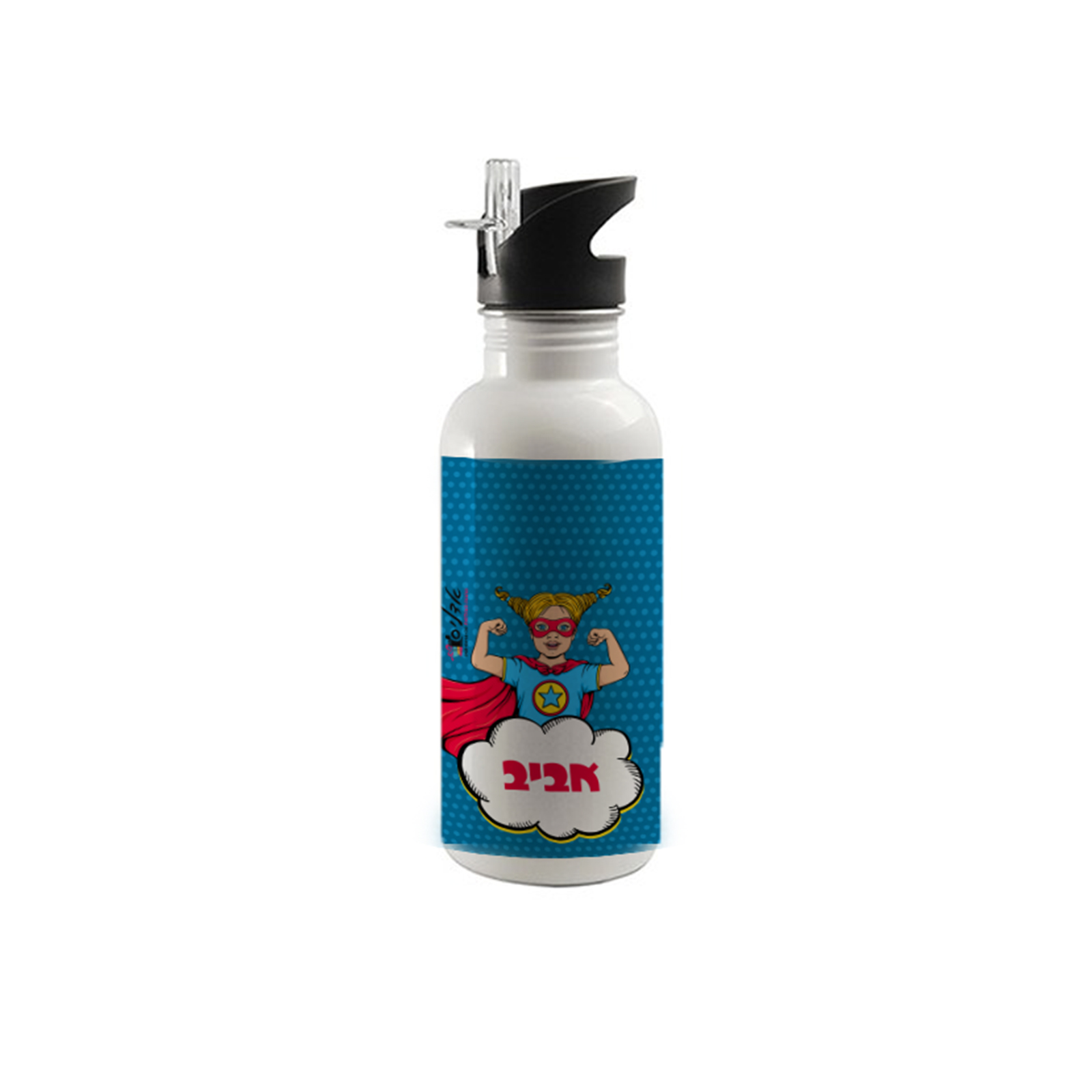 בקבוק אקולוגי מנירוסטה עם קש דגם סופר גירל