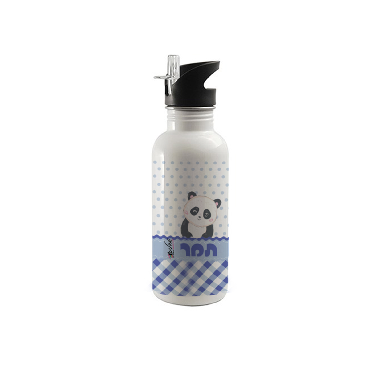 בקבוק אקולוגי מנירוסטה עם קש דגם פנדה סגול