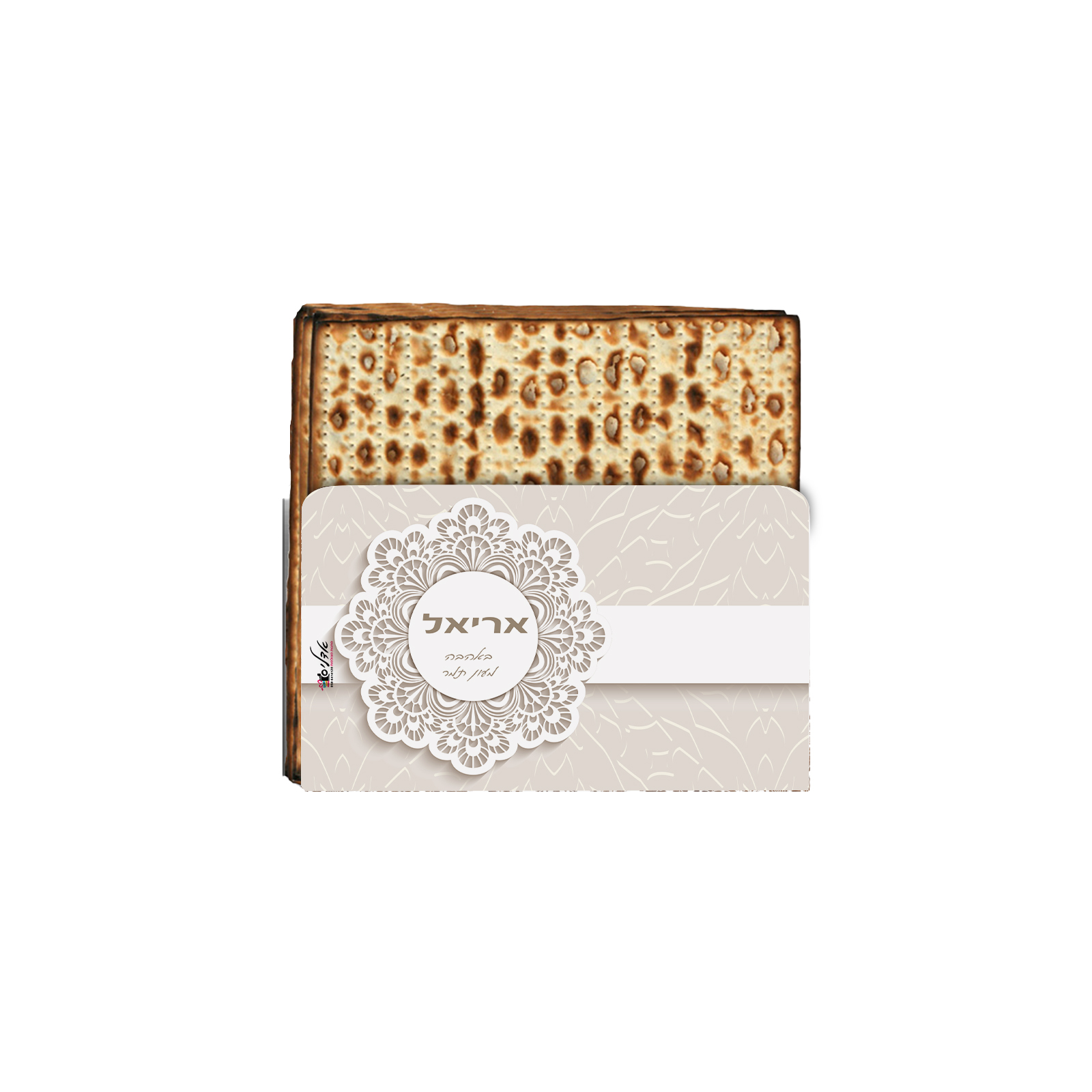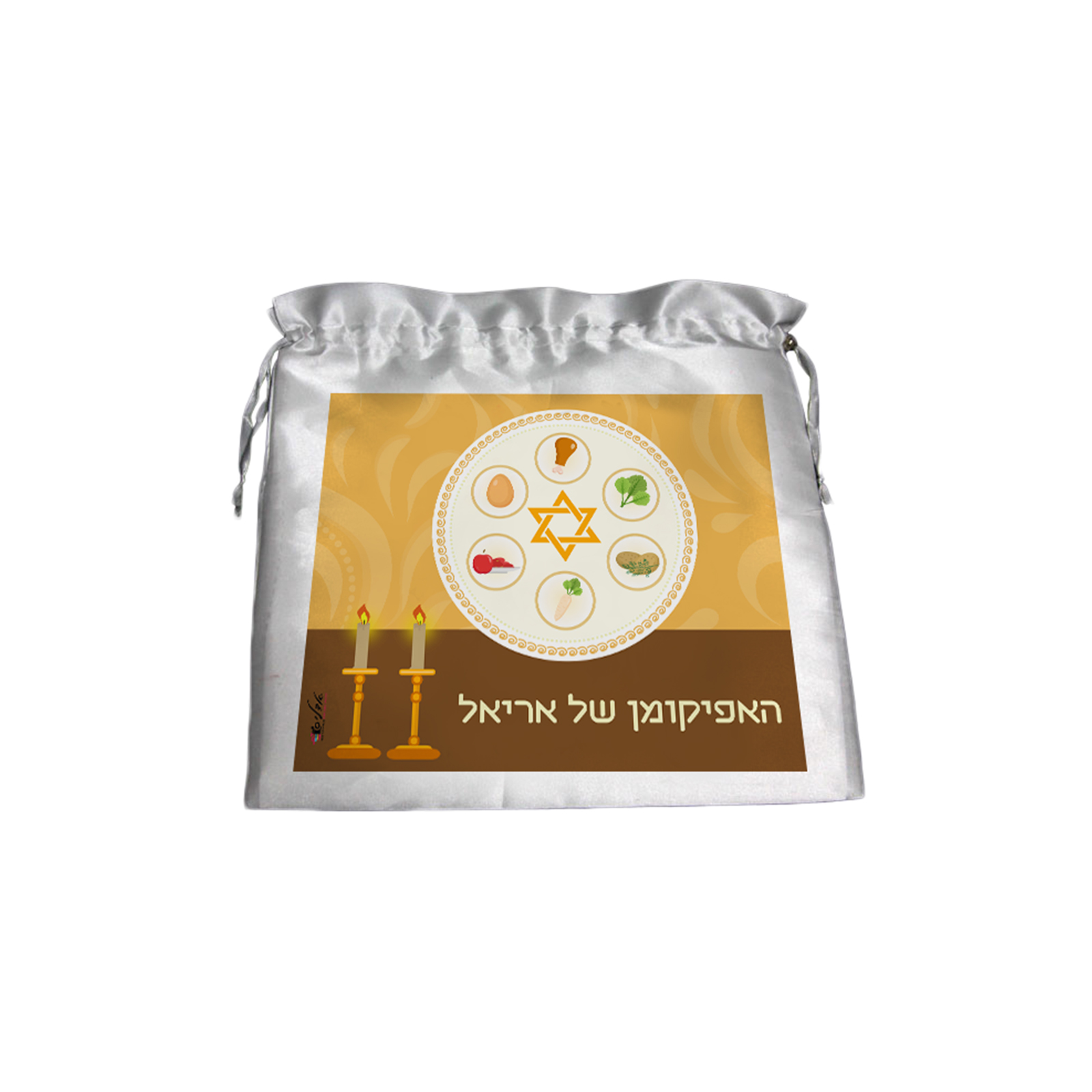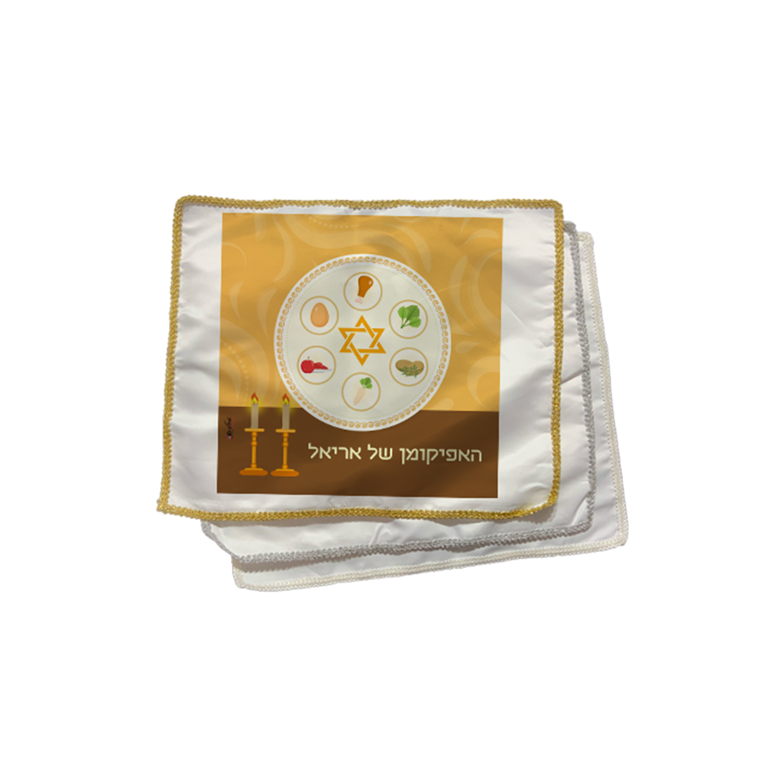 כיסוי לאפיקומן דגם מצה עגולה עם שם