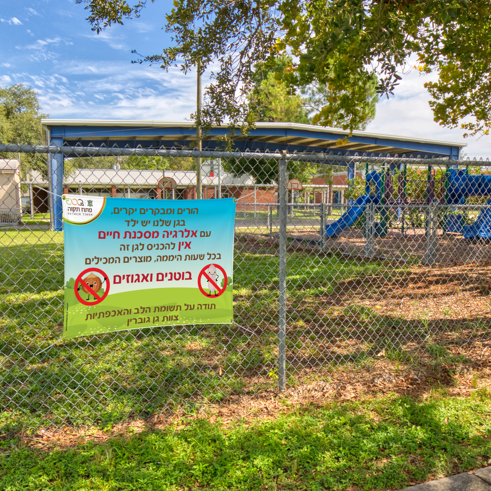 שלט שמשונית לציון מתחם שאסור באלרגנים